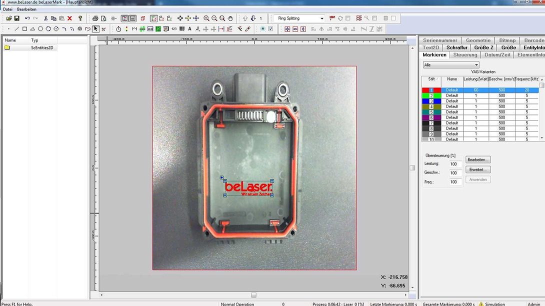 The laser software also enables complex serial number logic for the LMF „Pro“ XL800, which automatically resets at defined intervals such as daily or per shift. Furthermore, all laser-engraved content can be documented seamlessly, making it traceable at any time as to when, what, and by whom it was inscribed.